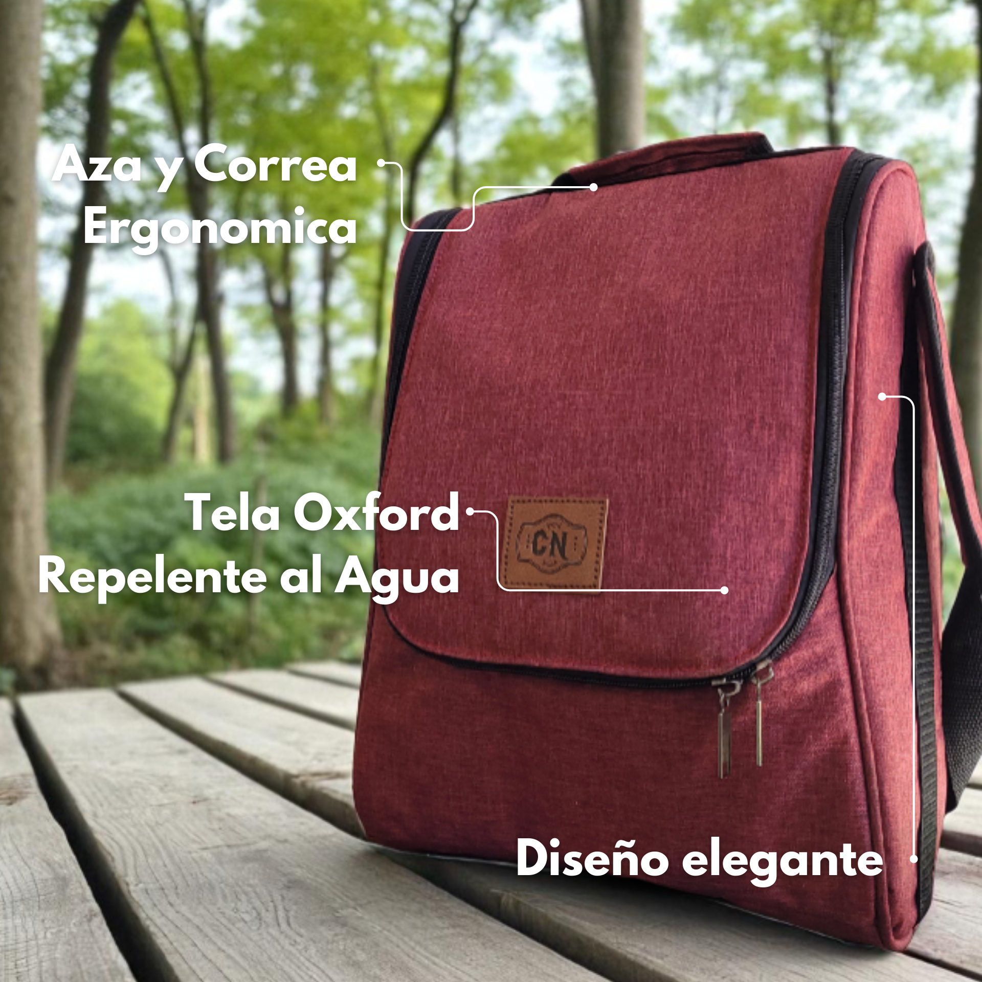 Con medidas de 35 cm de alto x 26 cm de ancho x 12 cm de fondo y una correa de 55 cm, su diseño es moderno y fácil de limpiar. 🌿🔥 La doble pared térmica conserva la temperatura de tus bebidas, mientras que la tela Oxford impermeable protege tus accesorios de la humedad.