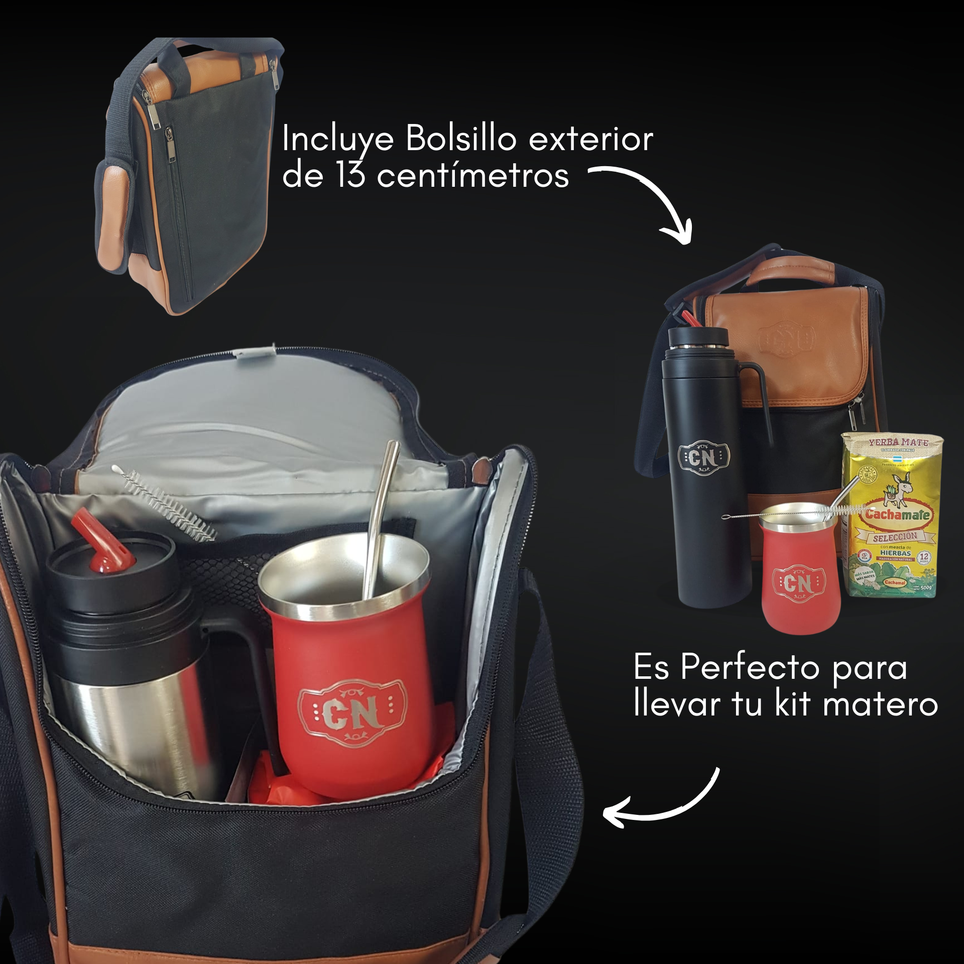 Lleva tu mate con estilo y funcionalidad con el Bolso Matero Café Claro Premium, fabricado en eco cuero resistente.
