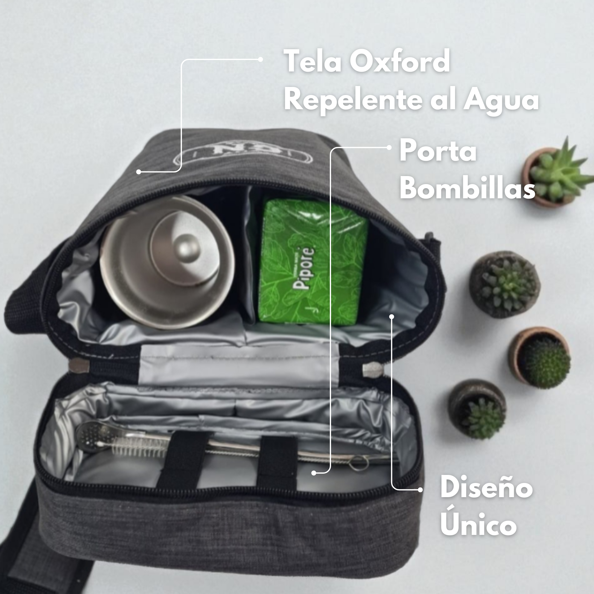 Fabricado con material acolchado y aislamiento térmico de papel de aluminio + espuma, mantiene la temperatura de tu infusión y protege tu equipo matero de golpes externos. Su diseño moderno y funcional lo hace perfecto para usar en viajes, la playa, reuniones o como regalo especial.