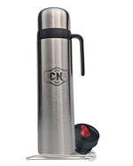 El termo de acero inoxidable plateado (1 litro) mantiene el agua caliente por horas, ideal para varias rondas de mate sin preocuparte por la temperatura.