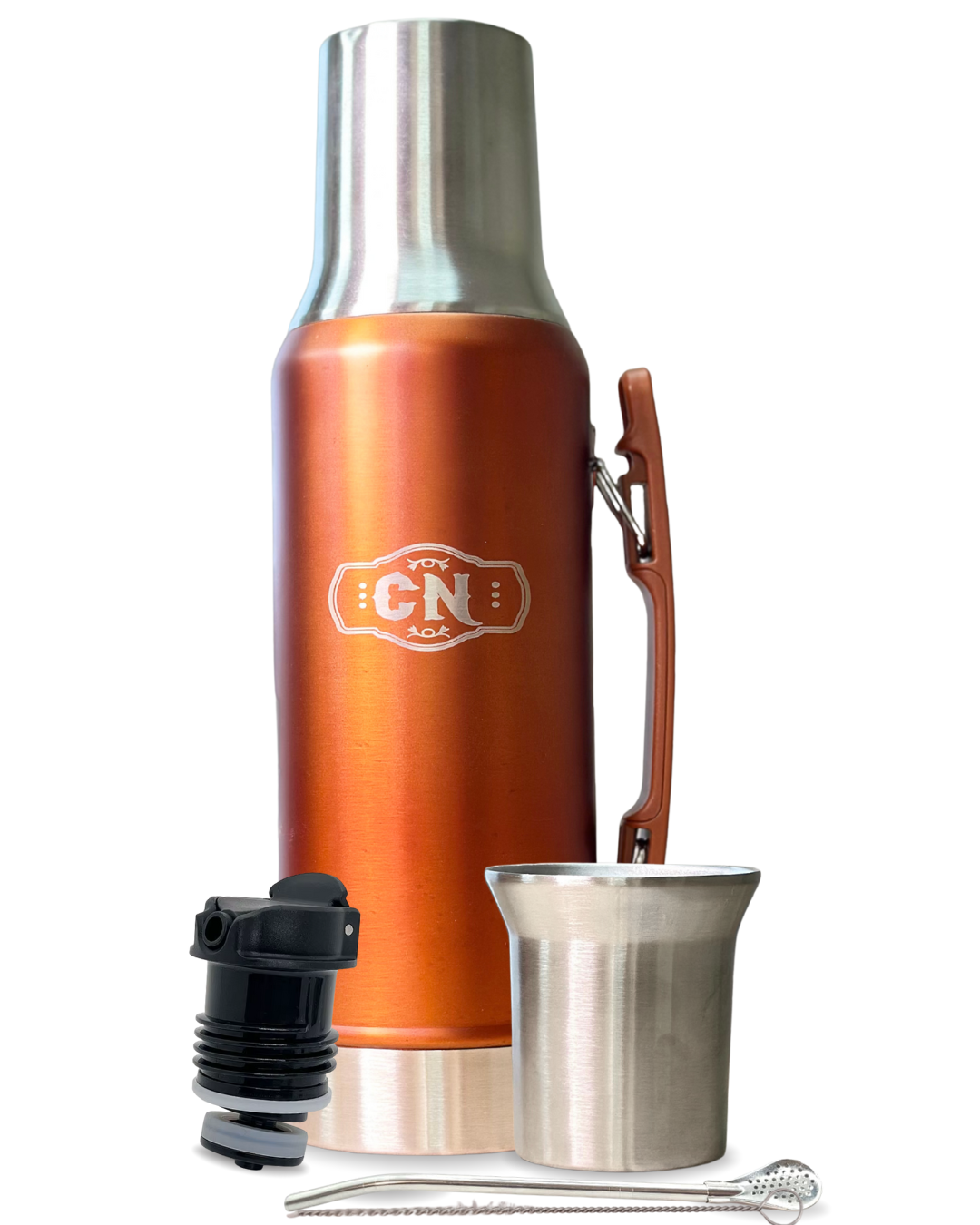 🌡️ Termo de acero inoxidable (1,2 litro 33 cm de alto x 10 cm de diámetro) – Mantiene el agua caliente o fría por más tiempo, para que siempre estés listo para un mate.