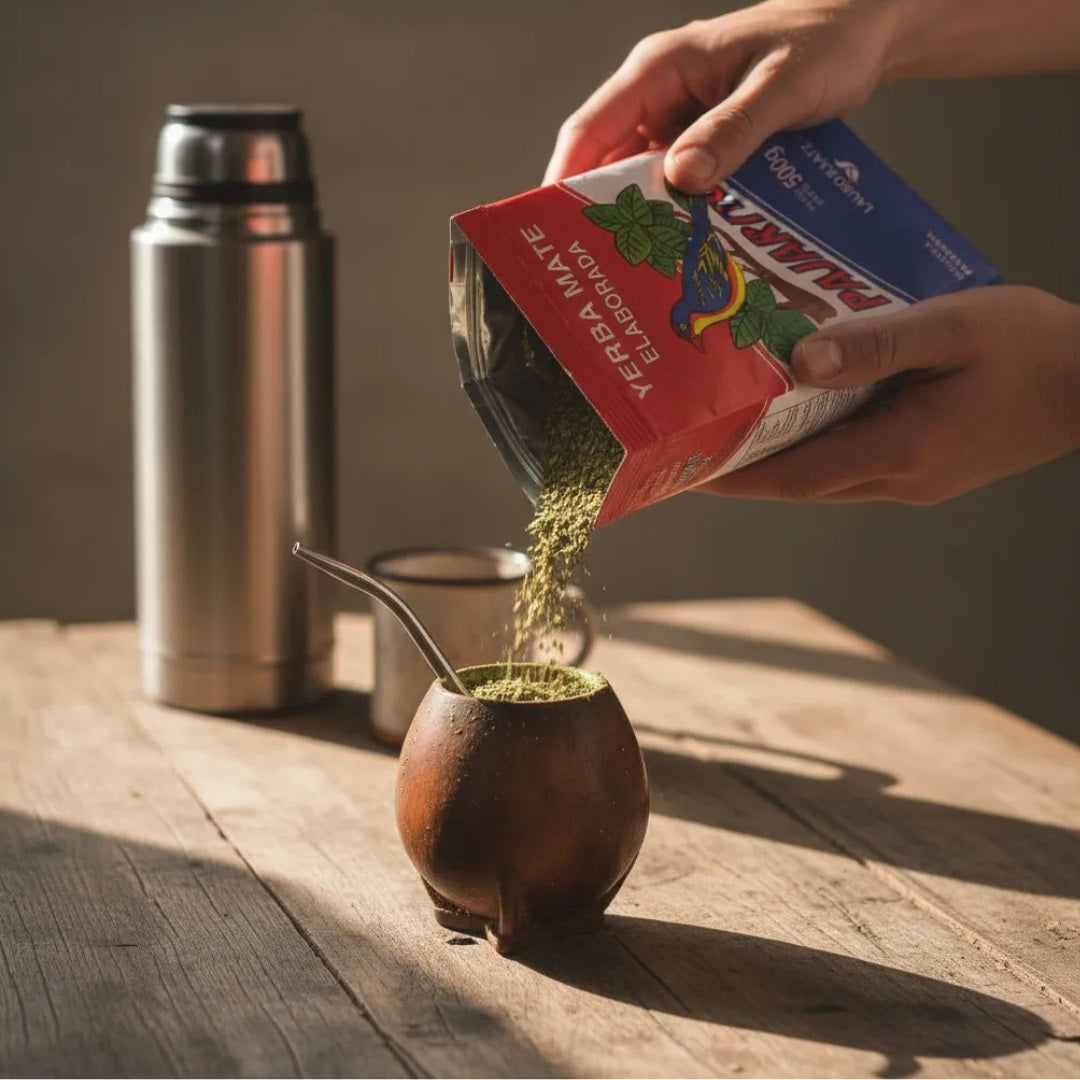 1. 🧉 Llena tu mate con yerba Pajarito Tradicional hasta 3/4 del recipiente.
