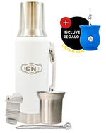 Incluye un termo Mate System Blanco 1.2L, libre de BPA, con tapa multiuso que también funciona como mate y un pico vertedor de precisión que asegura una cebada perfecta en cada ronda.