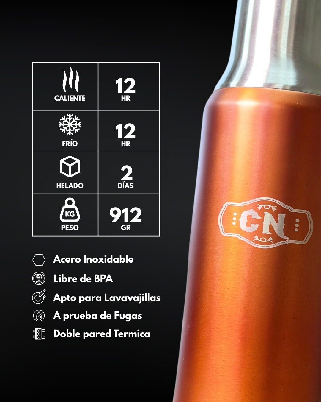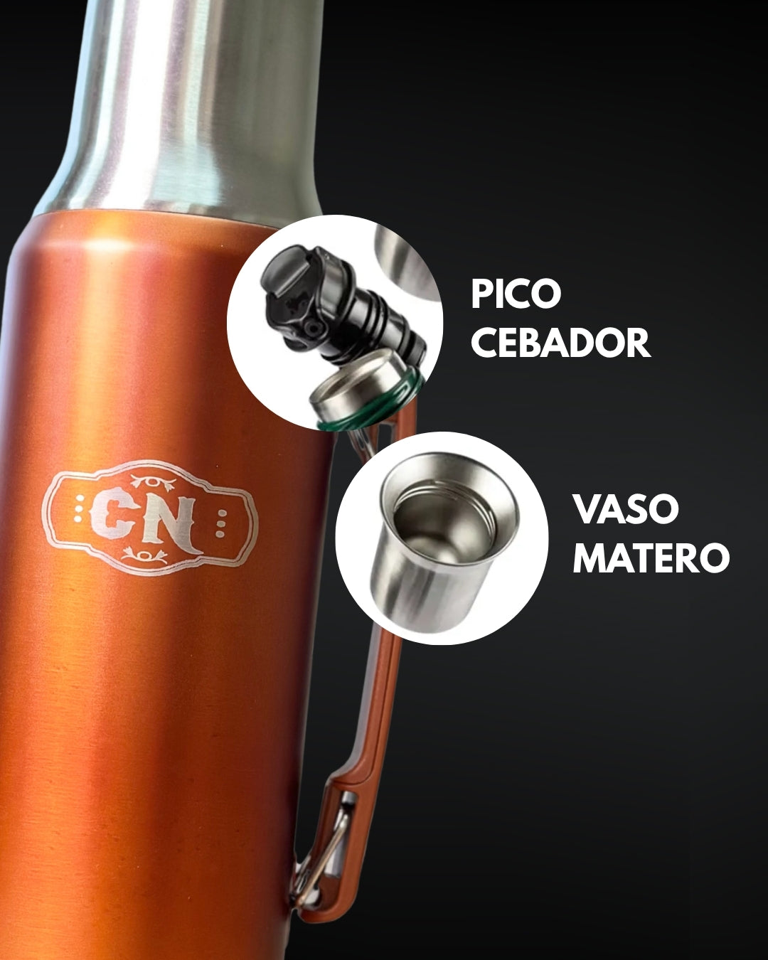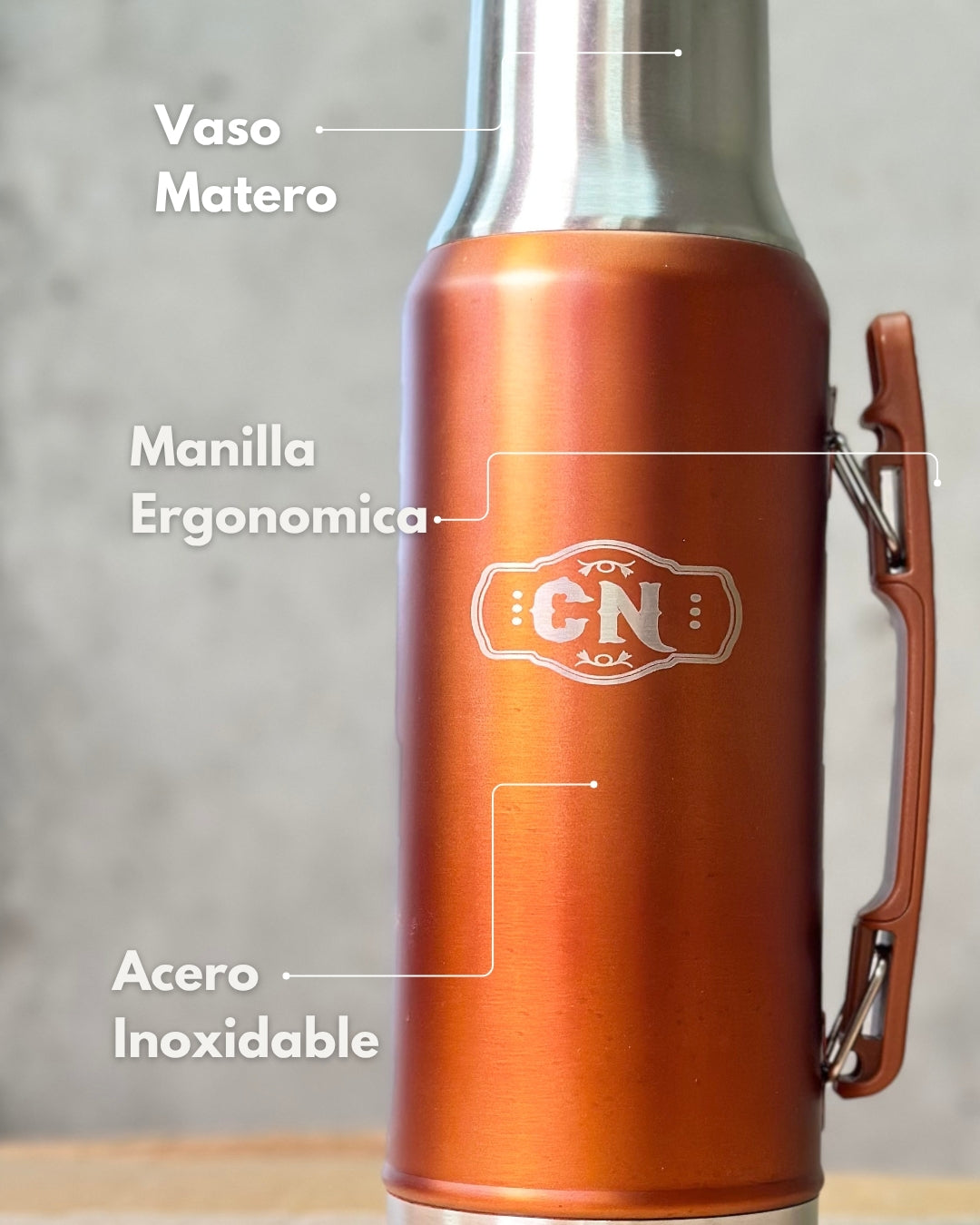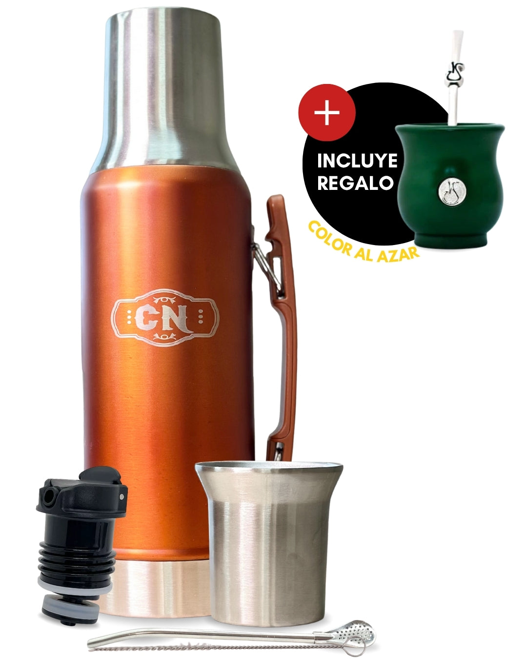 Set Matero Acero Inoxidable Naranja-Cobre | Termo 1.2L + Mate Tapa Bombilla y Cepillo | (Mate Sabio de Regalo!!)
