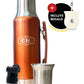 Incluye un termo Mate System Rubí de 1.2L, libre de BPA, con tapa multiuso que también funciona como mate y pico vertedor de precisión para cebadas perfectas.