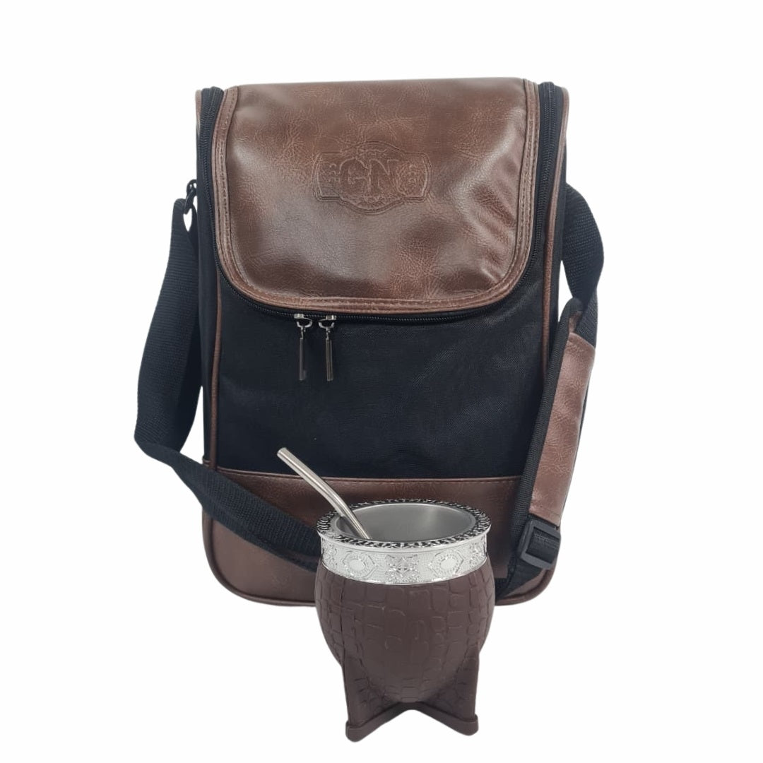 Bolso Matero | Eco Cuero Premium Marrón | 🎁 Mate Tipo Imperial + Bombilla de Regalo | Impermeable y Térmico